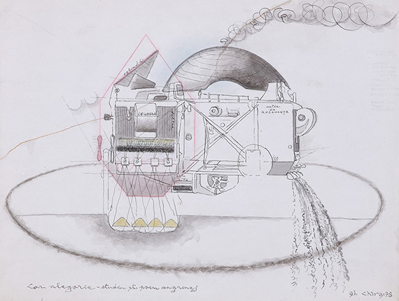 Auf Leinwand wie auf Papier erscheinen die Arbeiten gleichermaßen verträumt, karg und alchemistisch. In ihrer geisterhaften Ästhetik beschwören sie Anklänge von Picabia zu Adolf Wölfli, von Kandinsky zu Joseph Cornell. Seine künstlerische Arbeit ist eine systematische Organisation irrationalen Drangs. In der hermetischen, erlösenden Gnostik seiner Arbeiten verwandeln sich Sexualität und Macht in totemistische, mechanisierte Allegorien, wie in dem Werk von Konrad Klapheck.