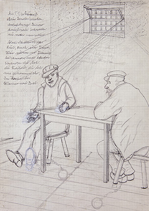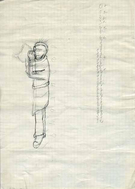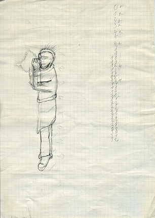 Doch die schmerzhaften Erlebnisse seiner Jugend, die Gewalttätigkeit und Vernachlässigung, verfolgen ihn. Davon erzählen auch seine Zeichnungen; die häufig in schwarz-weiß, auf ein Gitternetz skizzierten Szenen zeigen Menschen zwischen Anstrengung und Traurigkeit.
