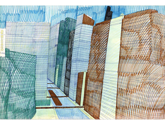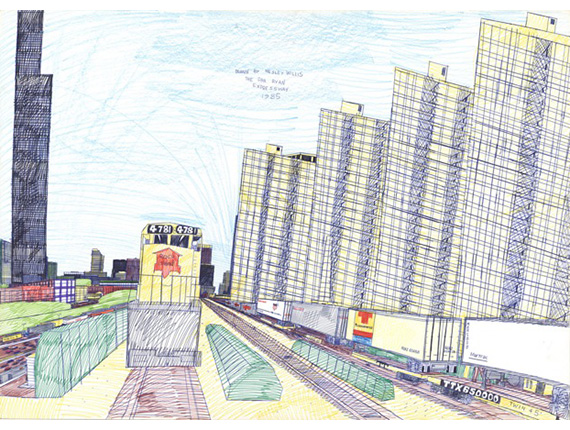 Wesley Willis schafft hunderte von komplizierten, ungewöhnlichen, farbigen Zeichnungen mit Kugelschreiber auf Papier, die meisten von ihnen zeigen die Straßenlandschaften Chicagos. Er verkauft seine Kugelschreiber-Zeichnungen auf der Straße (in der Regel $ 10 oder $ 20) oder verschenkt sie an Freunde, später erscheinen sie auch als Cover seiner Alben. Chicago, Geburtsstadt des Wolkenkratzers, mit der eindrucksvollen Skyline dominiert motivisch Willis Zeichnungen. Außerdem setzt er sich obsessiv dem Dan Ryan Express Way auseinander: Diese Schnellstraße mit den sich stauenden Autos und Lastwagen verbindet die hauptsächlich von Schwarzen bewohnte South Side mit Downtown Chicago und gilt in den Arbeiten von Wesley Willis als Metapher für den Wunsch zwei Welten zu überbrücken.